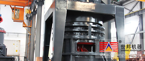主機(ji)(ji)電動(dong)機(ji)(ji)通(tong)過減速器(qi)帶(dai)動(dong)主軸及各(ge)層轉盤旋轉,轉盤通(tong)過柱銷帶(dai)動(dong)幾十個(ge)環輥(gun)在(zai)磨(mo)環滾(gun)(gun)道(dao)內(nei)滾(gun)(gun)動(dong)并(bing)旋轉。大塊物(wu)(wu)料(liao)(liao)(liao)經(jing)(jing)(jing)錘式破碎(sui)(sui)(sui)機(ji)(ji)破碎(sui)(sui)(sui)成小(xiao)顆粒后由(you)提升機(ji)(ji)送入(ru)儲料(liao)(liao)(liao)倉,電磁振動(dong)給料(liao)(liao)(liao)機(ji)(ji)將物(wu)(wu)料(liao)(liao)(liao)均勻的(de)(de)(de)送到上轉盤的(de)(de)(de)中部,物(wu)(wu)料(liao)(liao)(liao)在(zai)離心力的(de)(de)(de)作用下(xia)散向圓周邊,并(bing)落入(ru)磨(mo)環的(de)(de)(de)滾(gun)(gun)道(dao)內(nei)被環輥(gun)沖壓、滾(gun)(gun)碾、研(yan)磨(mo)而粉(fen)碎(sui)(sui)(sui),物(wu)(wu)料(liao)(liao)(liao)經(jing)(jing)(jing)層粉(fen)碎(sui)(sui)(sui)后落入(ru)層及第(di)三層,高(gao)壓離心風機(ji)(ji)的(de)(de)(de)抽吸(xi)作用將外部空氣吸(xi)入(ru)機(ji)(ji)內(nei),并(bing)經(jing)(jing)(jing)過第(di)三層粉(fen)碎(sui)(sui)(sui)后的(de)(de)(de)粗粉(fen)帶(dai)入(ru)選粉(fen)機(ji)(ji)內(nei)。選粉(fen)機(ji)(ji)內(nei)旋轉的(de)(de)(de)渦輪(lun)使粗顆粒物(wu)(wu)料(liao)(liao)(liao)回落重磨(mo),細粉(fen)則(ze)隨(sui)氣流進入(ru)旋風集粉(fen)器(qi)并(bing)由(you)其下(xia)部的(de)(de)(de)卸料(liao)(liao)(liao)閥排出即為成品,而帶(dai)有少(shao)量細粉(fen)塵(chen)的(de)(de)(de)氣流則(ze)經(jing)(jing)(jing)過脈(mo)沖除塵(chen)器(qi)凈(jing)化后通(tong)過風機(ji)(ji)和消聲器(qi)排出。