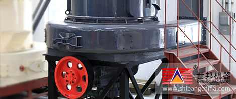 主(zhu)機(ji)工作過(guo)程是電動(dong)(dong)(dong)(dong)(dong)(dong)機(ji)通過(guo)一副三角帶輪帶動(dong)(dong)(dong)(dong)(dong)(dong)橫向傳動(dong)(dong)(dong)(dong)(dong)(dong)軸轉動(dong)(dong)(dong)(dong)(dong)(dong),橫向傳動(dong)(dong)(dong)(dong)(dong)(dong)軸再通過(guo)另一端的(de)錐齒輪帶動(dong)(dong)(dong)(dong)(dong)(dong)主(zhu)機(ji)主(zhu)軸,主(zhu)軸的(de)上(shang)端連(lian)接著磨輥(gun)(gun)(gun)(gun)(gun)吊(diao)(diao)架(jia),磨輥(gun)(gun)(gun)(gun)(gun)裝置通過(guo)橫擔軸吊(diao)(diao)裝在(zai)磨輥(gun)(gun)(gun)(gun)(gun)吊(diao)(diao)架(jia)上(shang)并形(xing)成擺動(dong)(dong)(dong)(dong)(dong)(dong)支點(dian),其不僅圍繞軸回轉,同時(shi)在(zai)離心(xin)力(li)的(de)作用(yong)下磨輥(gun)(gun)(gun)(gun)(gun)沿著磨環(huan)內圓(yuan)滾動(dong)(dong)(dong)(dong)(dong)(dong),磨輥(gun)(gun)(gun)(gun)(gun)本身因摩(mo)擦作用(yong)而自(zi)轉。磨輥(gun)(gun)(gun)(gun)(gun)吊(diao)(diao)架(jia)下端裝有(you)鏟(chan)(chan)(chan)刀(dao)架(jia),鏟(chan)(chan)(chan)刀(dao)架(jia)的(de)下法蘭(lan)上(shang)裝有(you)傾斜的(de)鏟(chan)(chan)(chan)刀(dao),鏟(chan)(chan)(chan)刀(dao)的(de)前端接近磨室襯板,后端位于磨輥(gun)(gun)(gun)(gun)(gun)與磨環(huan)形(xing)成的(de)楔(xie)形(xing)間隙內,鏟(chan)(chan)(chan)刀(dao)與磨輥(gun)(gun)(gun)(gun)(gun)同轉過(guo)程中把物料鏟(chan)(chan)(chan)拋喂入磨輥(gun)(gun)(gun)(gun)(gun)磨環(huan)之間而被擠壓、碾(nian)碎(sui)。從磨環(huan)底(di)部進入磨腔的(de)氣流將小顆粒粉料帶入選粉機(ji),由(you)此而達到(dao)制粉目的(de)。