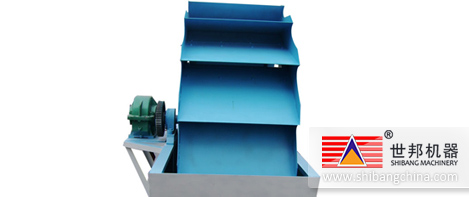 工作(zuo)時(shi),電機通(tong)過三角帶、減速(su)機、齒輪(lun)減速(su)后帶動葉(xie)輪(lun)緩慢轉動,砂(sha)(sha)石(shi)(shi)有給料槽(cao)(cao)進(jin)入洗(xi)槽(cao)(cao)中,在葉(xie)輪(lun)的(de)帶動下翻滾,并互(hu)相研磨,除去覆(fu)蓋砂(sha)(sha)石(shi)(shi)表面的(de)雜質,同時(shi)破壞(huai)包覆(fu)砂(sha)(sha)粒的(de)水汽層(ceng),以(yi)利于脫(tuo)水;同時(shi)加(jia)水,形成(cheng)強大水流(liu),及時(shi)將(jiang)雜質及比重小的(de)異物帶走,并從溢(yi)出口(kou)洗(xi)槽(cao)(cao)排出,完(wan)成(cheng)清洗(xi)作(zuo)用(yong)。干凈的(de)砂(sha)(sha)石(shi)(shi)由葉(xie)片帶走,砂(sha)(sha)石(shi)(shi)從旋轉的(de)葉(xie)輪(lun)倒入出料槽(cao)(cao),完(wan)成(cheng)砂(sha)(sha)石(shi)(shi)的(de)清洗(xi)作(zuo)用(yong).